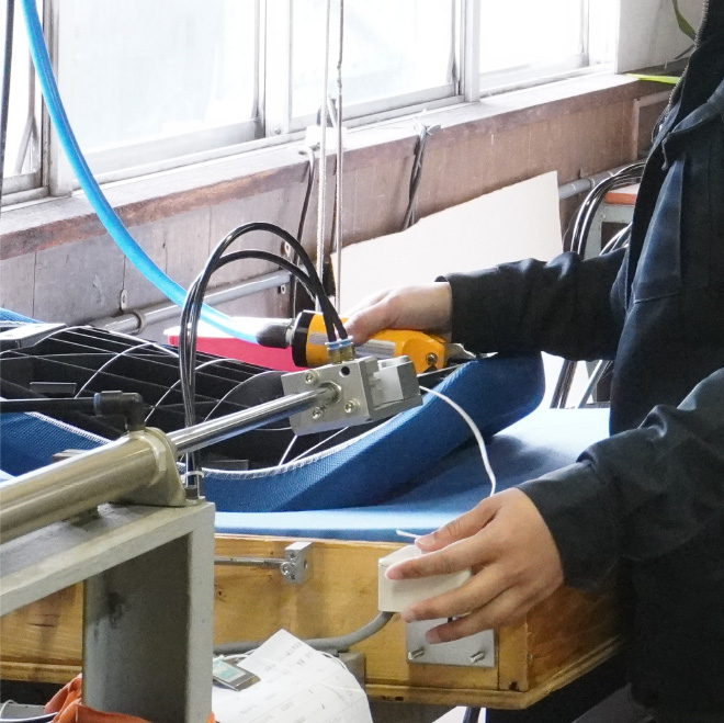 私たちの考えるオフィスチェアは他の家具と違い「長時間使用すること」「体を預ける」ための家具です。ですので快適さはもちろん、安全である為に設計段階から配慮し、さらに自動車部品の製造を行ってきた当社だからできる厳しい品質基準と検査で、どなたにも安全で安心して使える製品づくりをおこなっています。